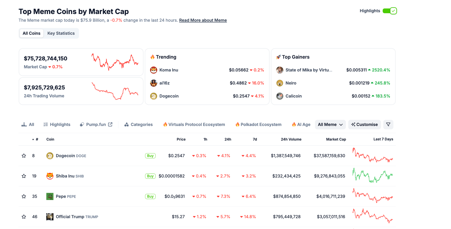 Shiba Inu (SHIB), another major memecoin, has also suffered, declining by 2.7% in the past 24 hours and 3.2% over the past seven days.