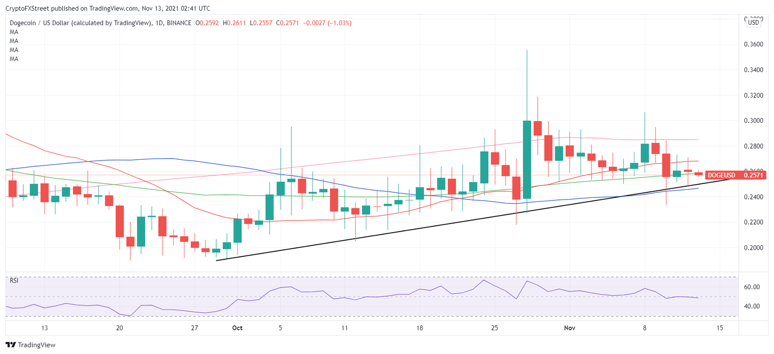Dogecoin price readies for a sell-off as $0.25 support appears at risk