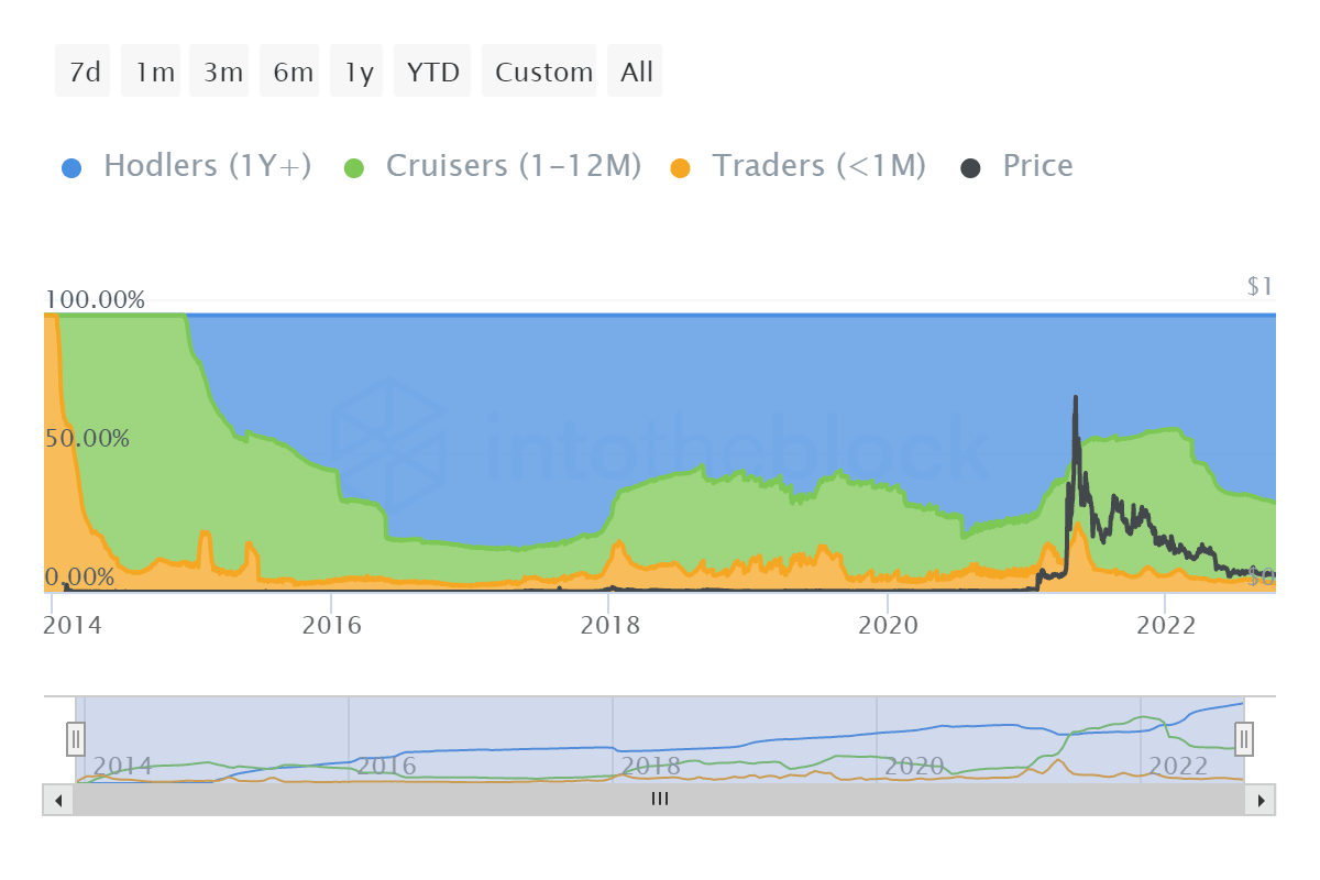 - Since January 2022, DOGE long-term holders’ concentration in the market has risen by over 26%.