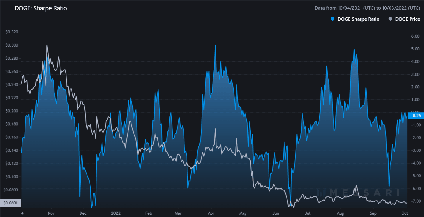 The lack of volatility is becoming Dogecoin’s bane since the meme coin’s risk-adjusted returns are still at a negative right now. The Sharpe Ratio is currently at -0.25%, which is not the most alluring figure at the moment.