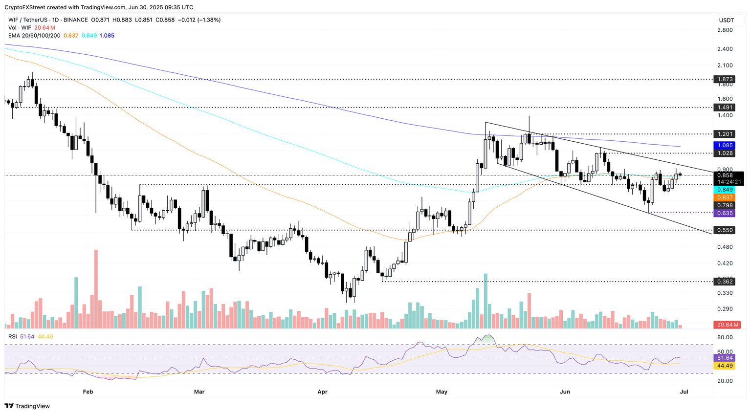 However, if WIF fails to hold above the 50-day EMA at $0.83, it could test the previous dip on June 22 at $0.63.