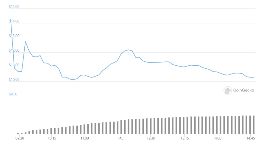 Data from CoinGecko shows that on its first day of trading live in the markets, DYDX is trading at a price of $10.28 at the time of writing after hitting an intra-day high at $14.24.