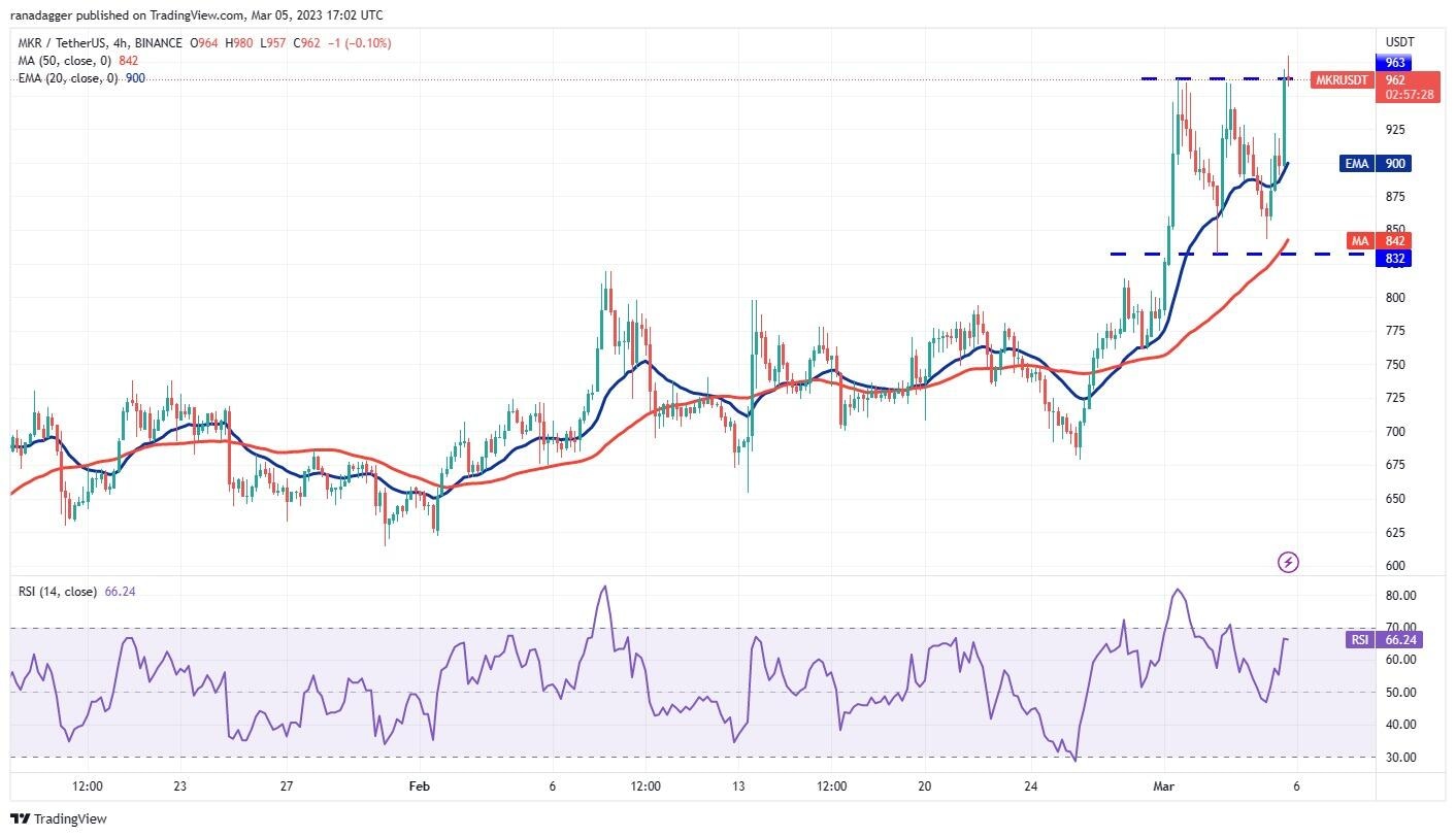 The upsloping moving averages and the RSI in the positive territory indicate that the path of least resistance is to the upside. If buyers sustain the price above $963, the MKR/USDT pair may start its journey to the $1,150 to $1,170 resistance zone.
