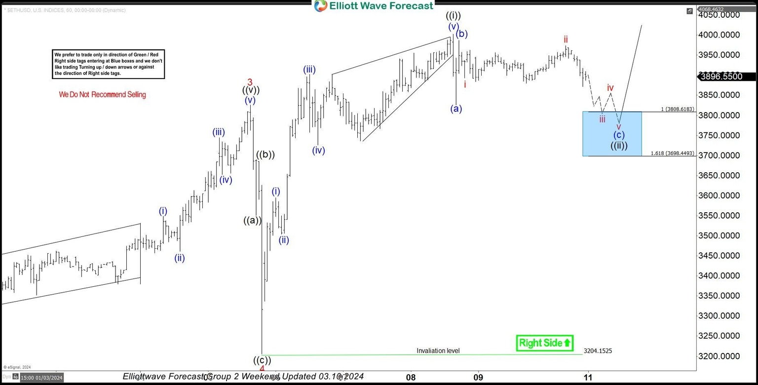 Hello fellow traders. In this technical article we’re going to take a look at the Elliott Wave charts charts of ETHUSD published in members area of the website. As our members know Ethereum has given us 3 waves pull back recently that found buyers right at the Blue Box ( Buying Area). We have been favoring the long side due to impulsive bullish sequences the crypto is showing in the cycle from the October 2023 low. In further text we’re going to explain the short term Elliott Wave forecast and trading setup.