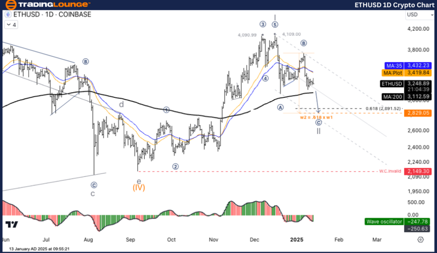 Ethereum/ U.S. dollar (ETHUSD) Trading Strategy: ETH is likely heading toward the $2,891–$2,829 support zone to complete its Wave II correction. A reversal in this area would indicate the start of Wave III and a resumption of the bullish trend.