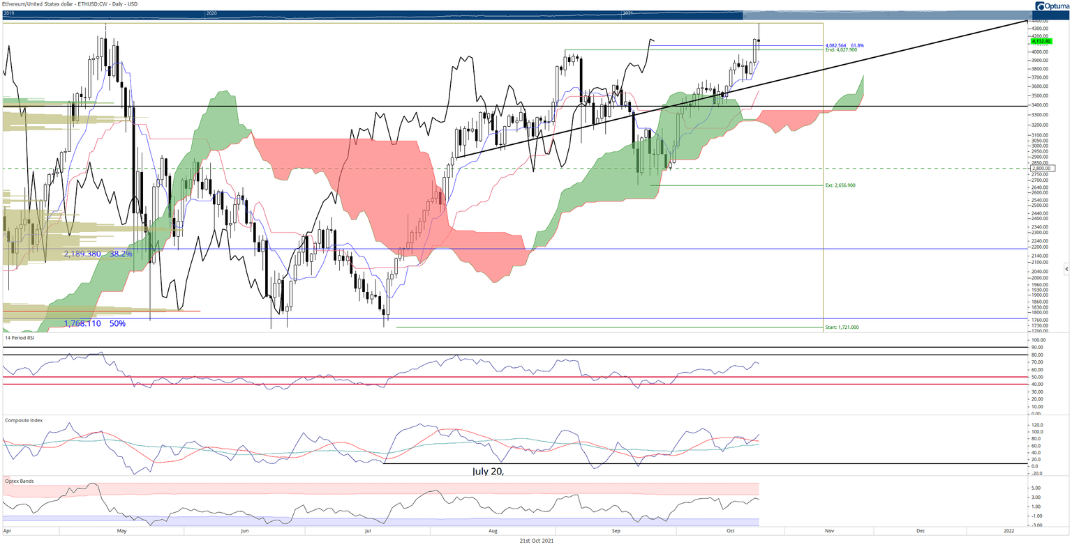 However, if Ethereum makes new all-time highs, it enters into price discovery mode. That means the path of least resistance is higher, and there is no technical limit to how high Ethereum could go.