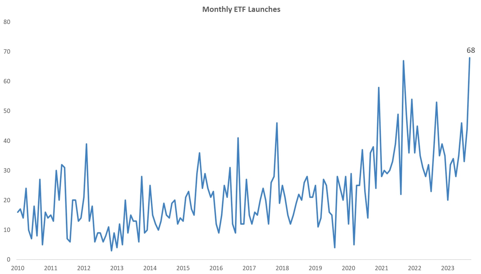 As a side note, up to 68 ETFs have launched in September alone, without including the list of nine expected to debut on Monday. It translates to a pace of more than three per day. According to Balchunas, which is a new all-time record.