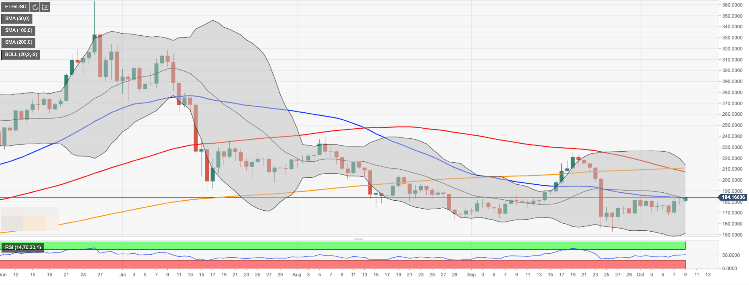 On the downside, the selling pressure is likely to increase on a breakthrough below $180.00. This development will lead to an extended correction towards the next psychological area $170.00 closely followed by October 6 low of $168.83. A sustainable move above this handle may open up the way towards this week’s low of $164.50 and psychological $160.00.