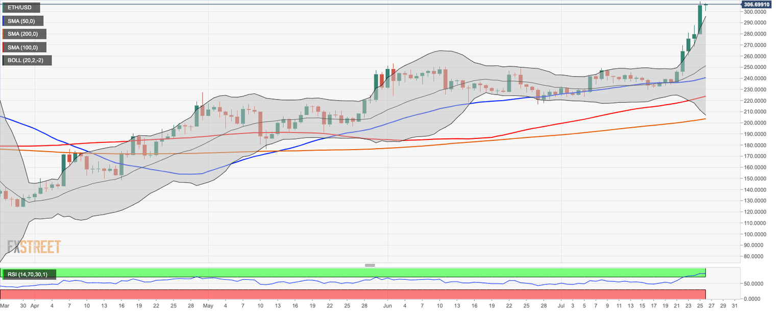 Ethereum Market Update: ETH/USD jumps above $300.00 amid skyrocketing options trading volumes
