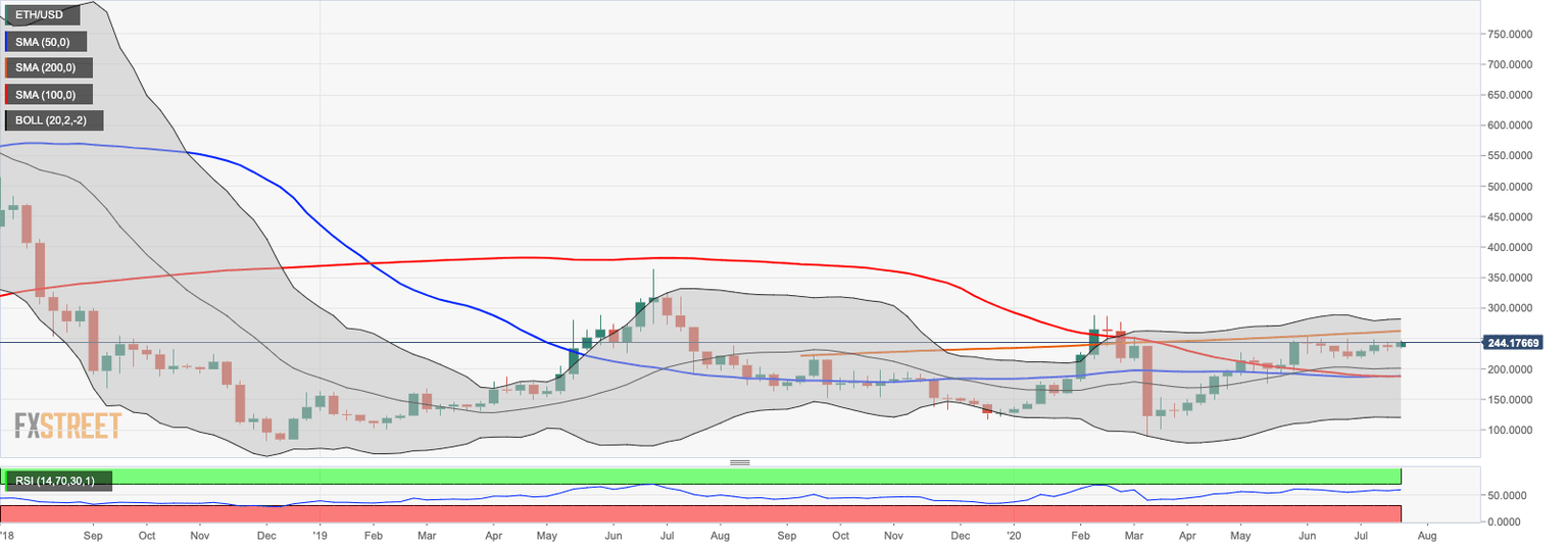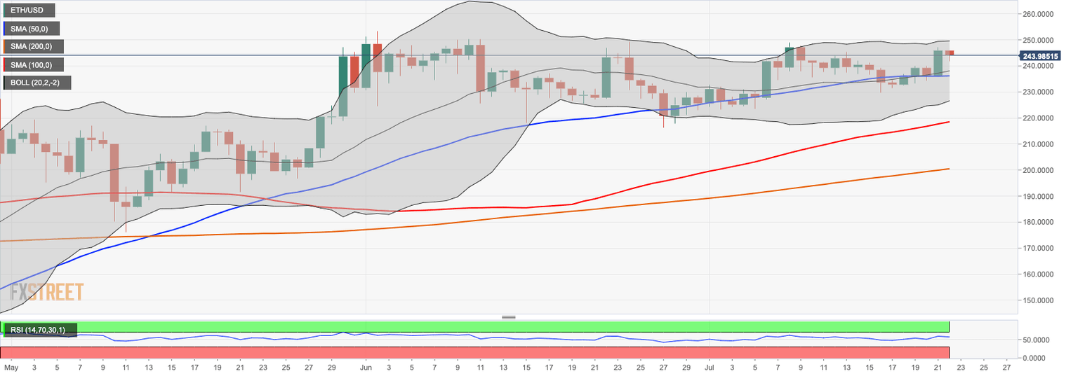 - ETH/USD may retreat to $240.00 as bulls hit the pause button.