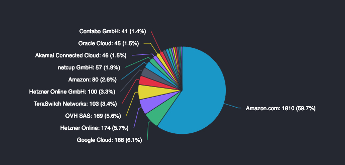 Distribution of Ethereum nodes from web service providers. Source: Ethernodes