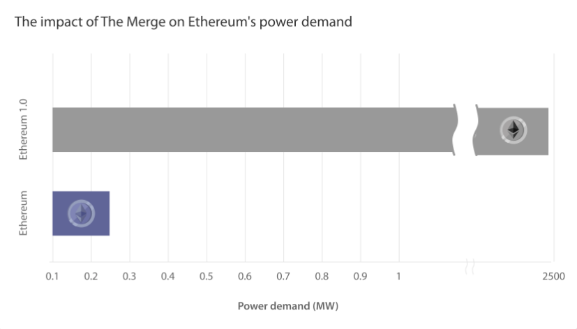 The Merge has reduced Ethereum's power consumption by more than 99%. Source: CCAF