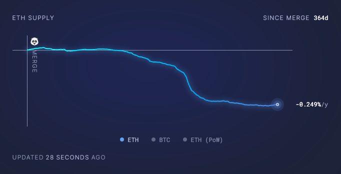 Change in ETH supply since the Merge. Source: ultrasound.money