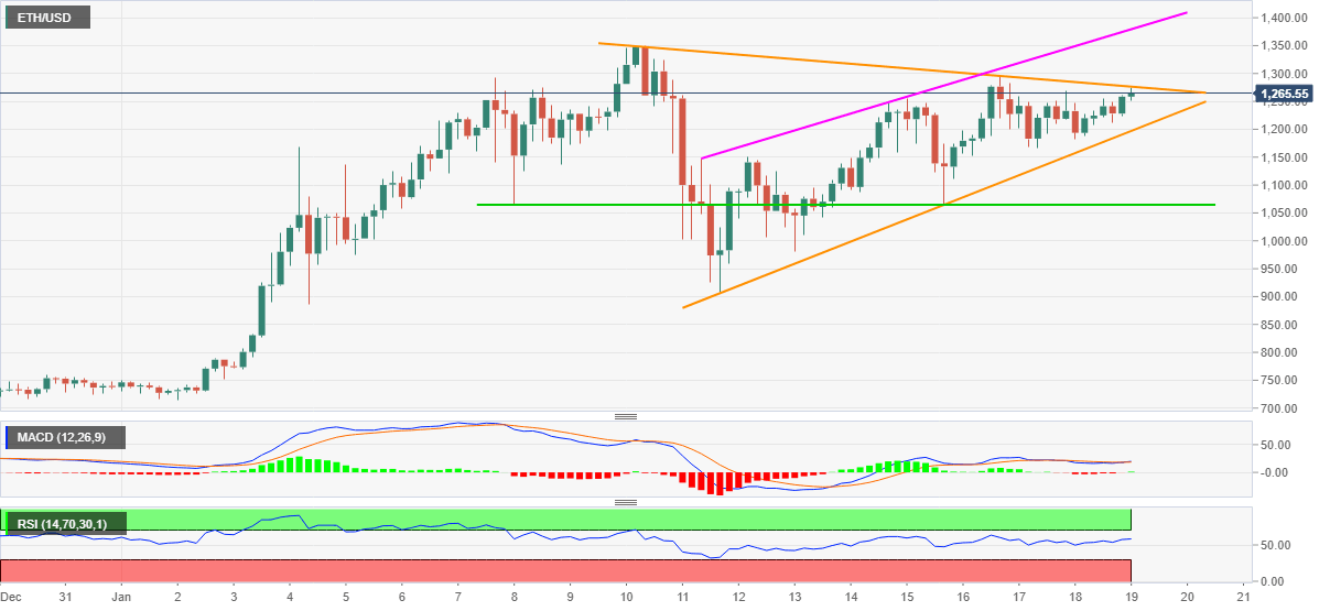 On the flip side, ETH/USD weakness below the triangle support line, currently around $1,197, can recall 11-day-long horizontal support near $1,064.