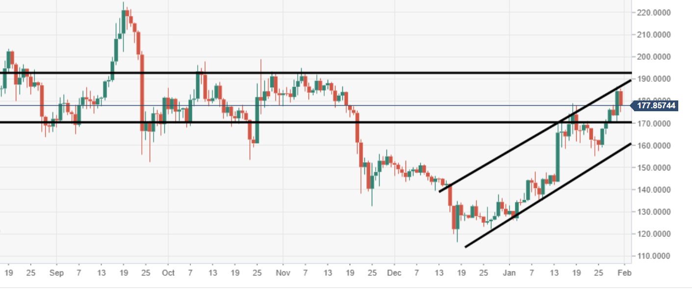 A heavy amount of near-term supply should be noted at the range of $170-190 via the daily chart.