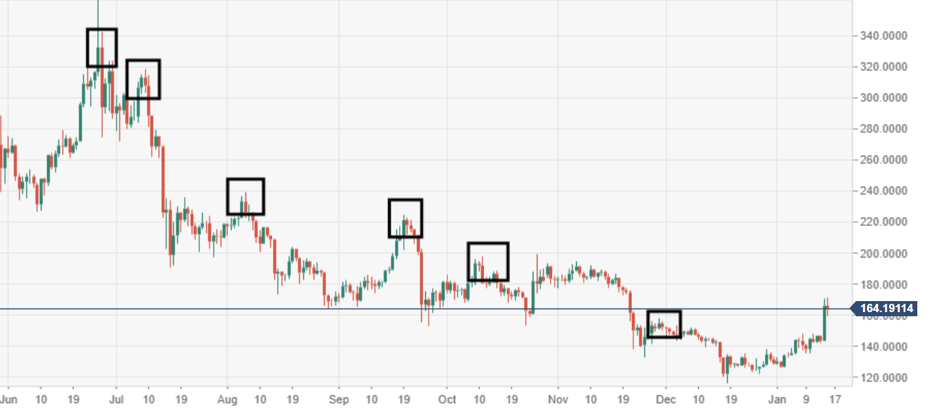 Price action since June 2019 had been stuck within the market structure of producing lower highs and lower lows. However, the bulls in the session of Tuesday broke above the prior lower high, effectively voiding the structure.