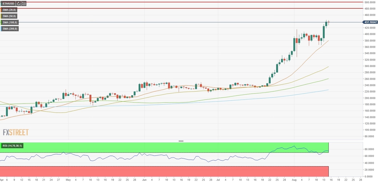 Ethereum Price Analysis: ETH/USD consolidates weekly gains near $440