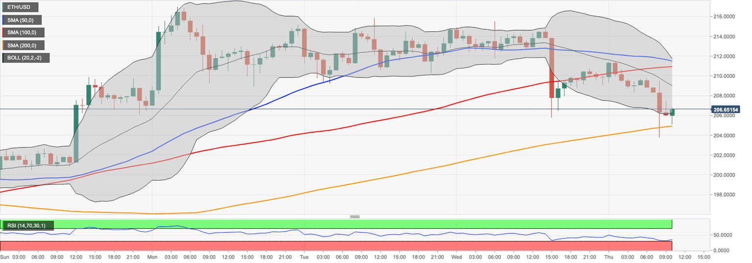 On the intraday charts, ETH/USD is now supported by 1-hour SMA200 at $205.00, followed by the intraday low of $203.74. If this area is cleared, the sell-off may be extended towards a psychological $200.00. The next critical support is created by $190.00 with daily SMA100 located on approach.