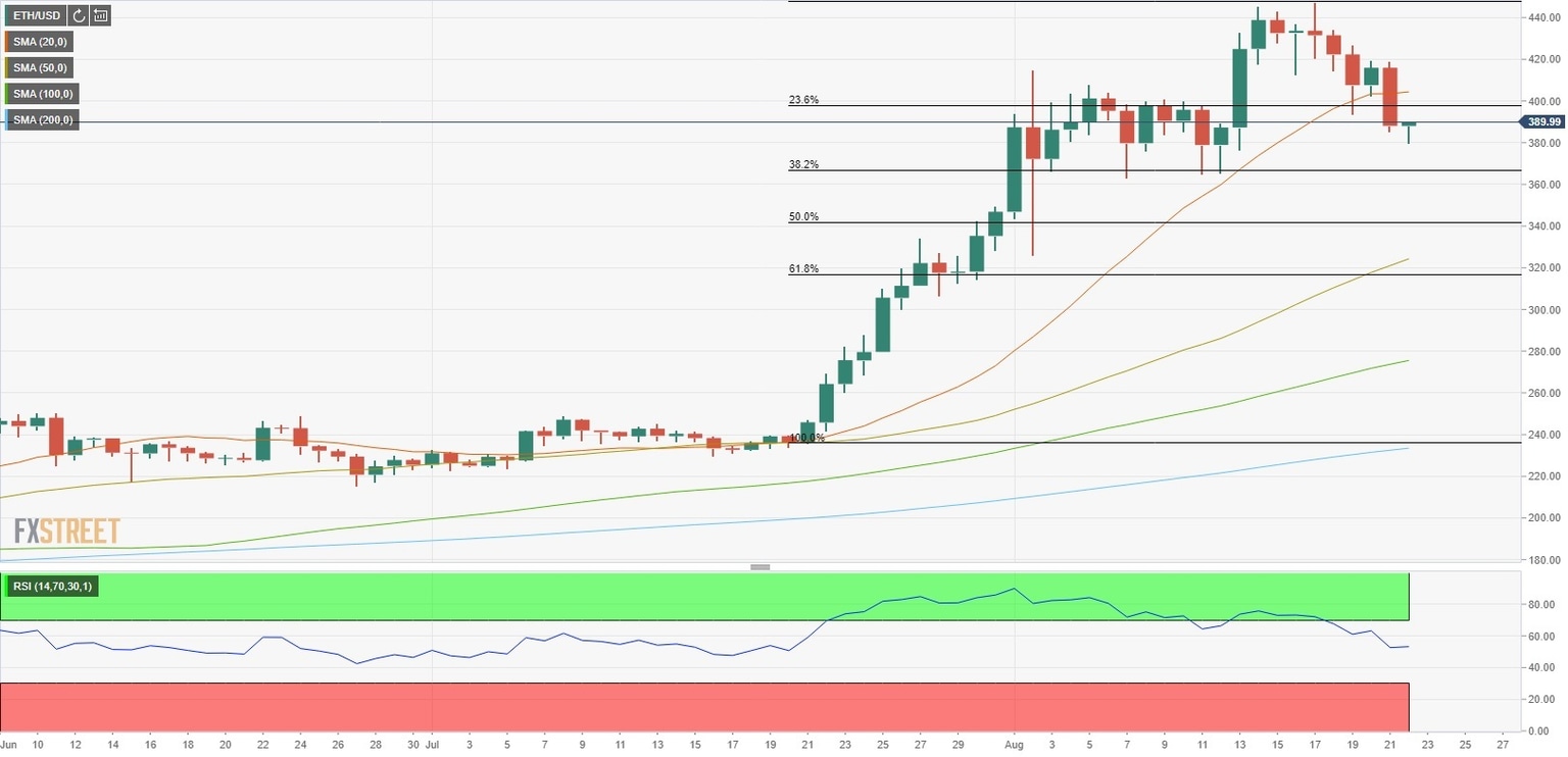 Ethereum price analysis: ETH/USD extends slide below $400 following Friday's sharp drop