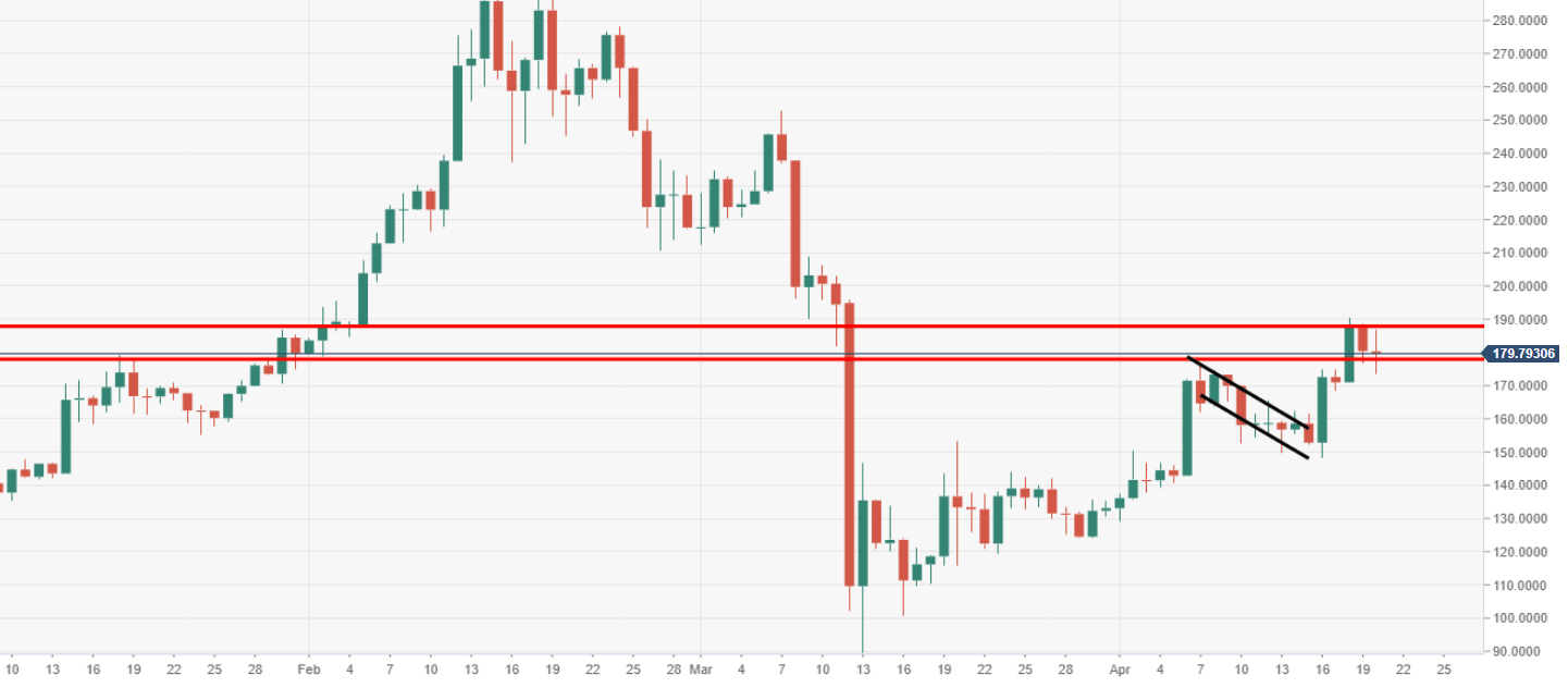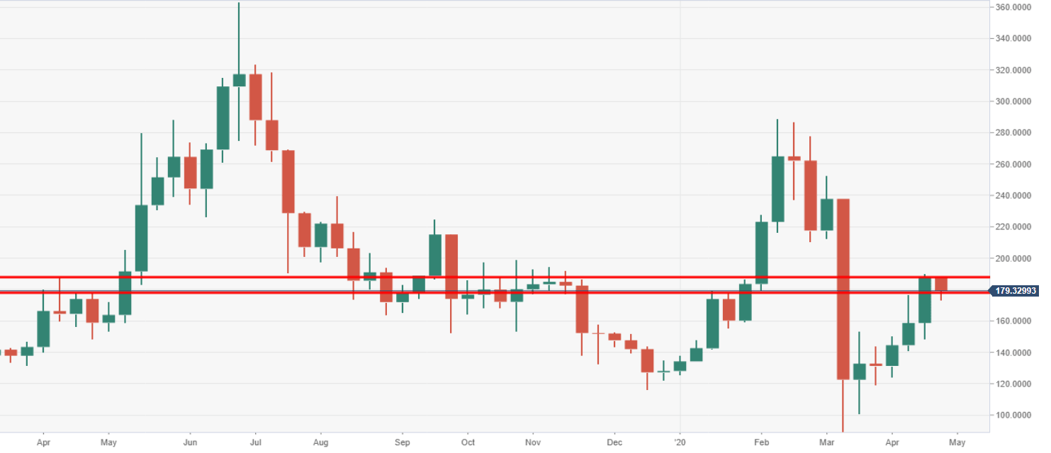 - Heavy supply should be noted at the range of $180-190, capping upside.