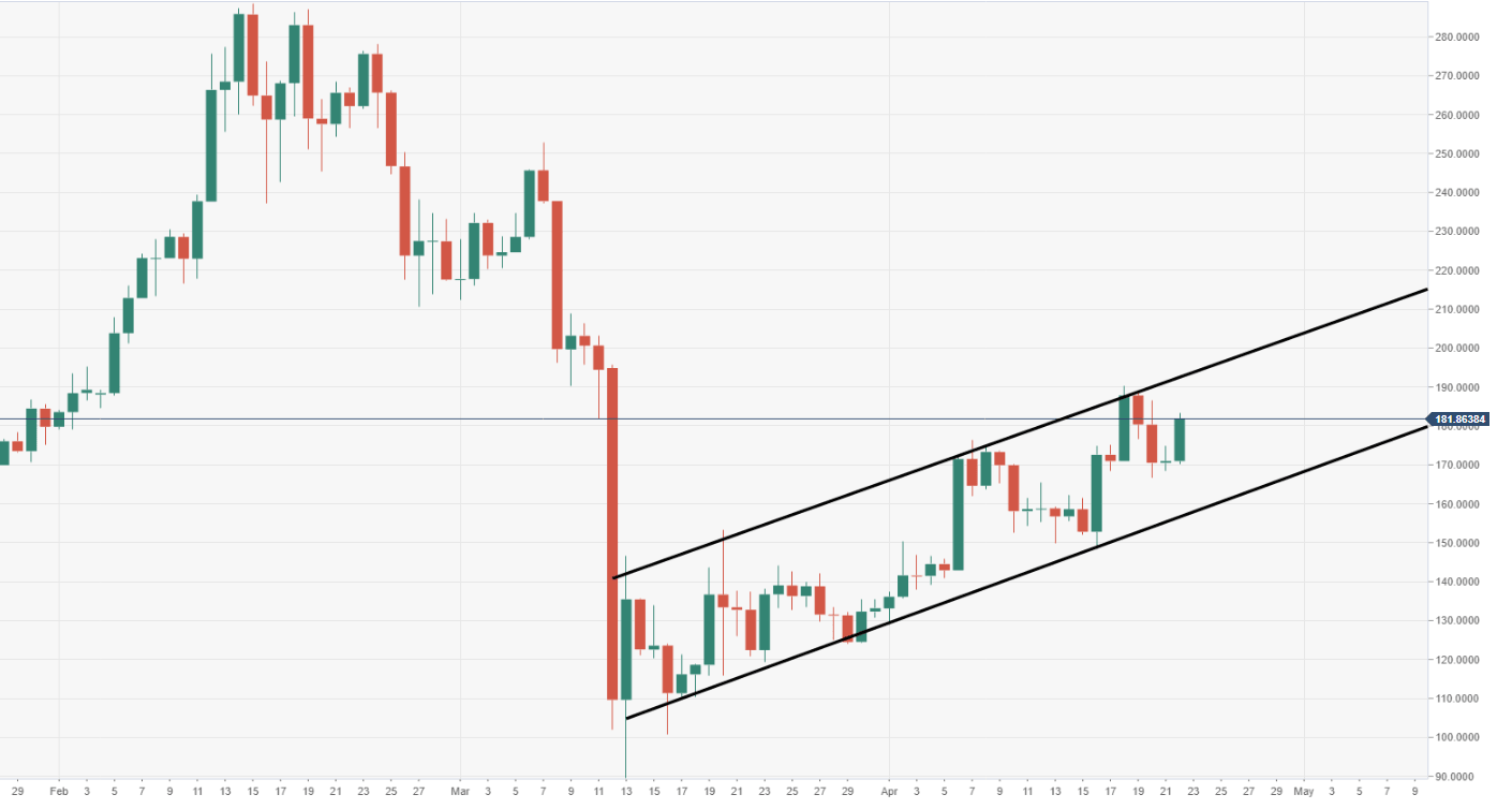 Supply remains heavy from the range of $175 up to $190, ahead of the $200 retest.