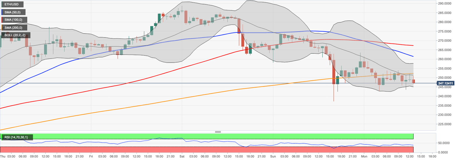 On the intraday chart, ETH/USD is capped by SMA200 1-hour at $252.30. If this resistance is broken, the recovery may be extended towards psychological $260.00 and $261.50 reinforced by SMA50 1-hour.