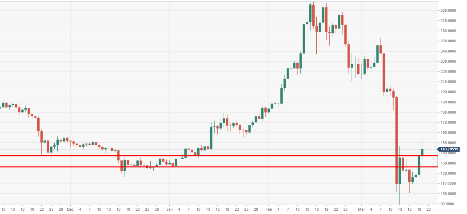 - The bulls were able to clear a chunky barrier of resistance at the range of $135-140 capping upside.
