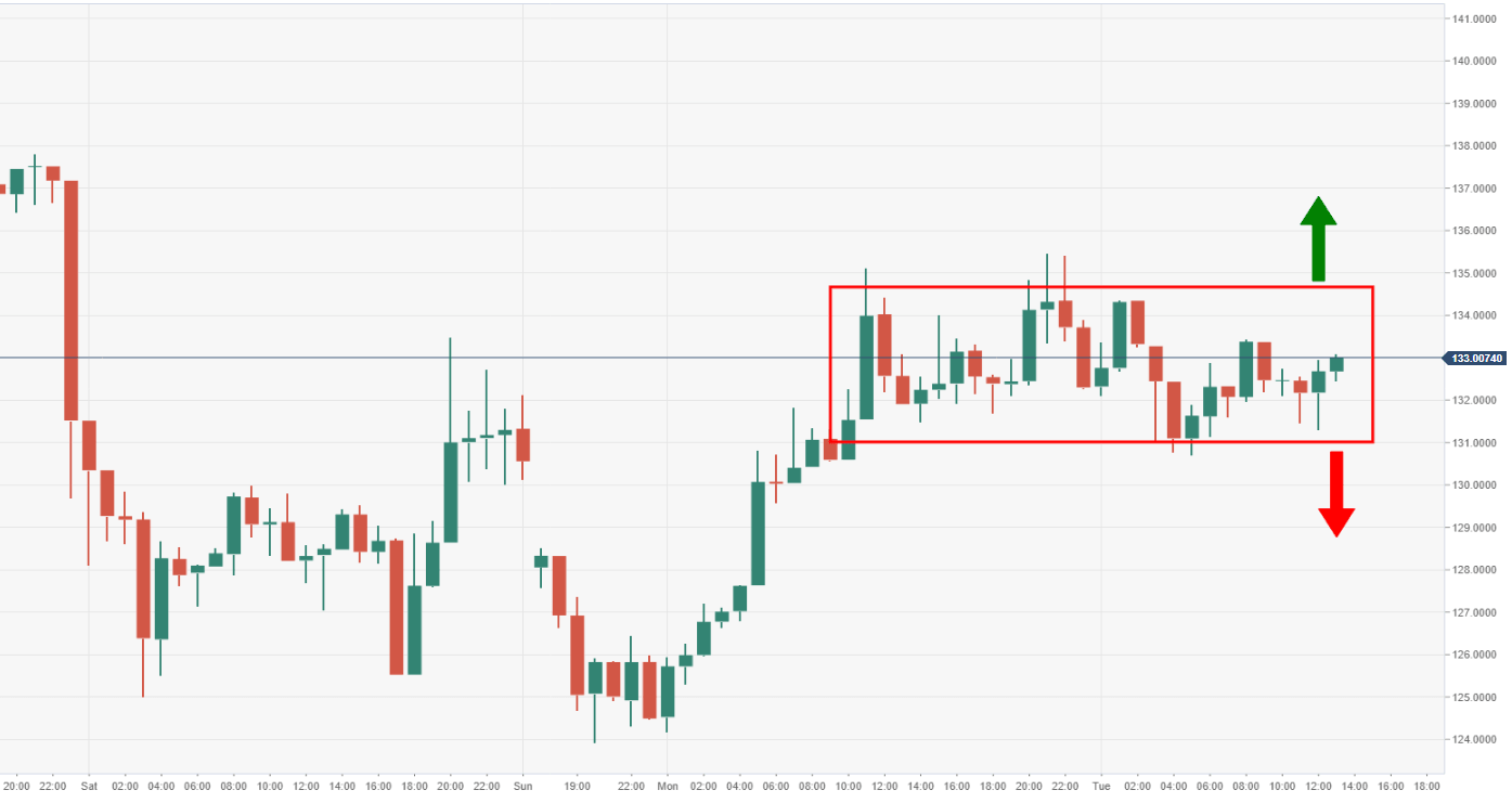 The price broke out of a narrowing range block formation, resting and making way for further downside.