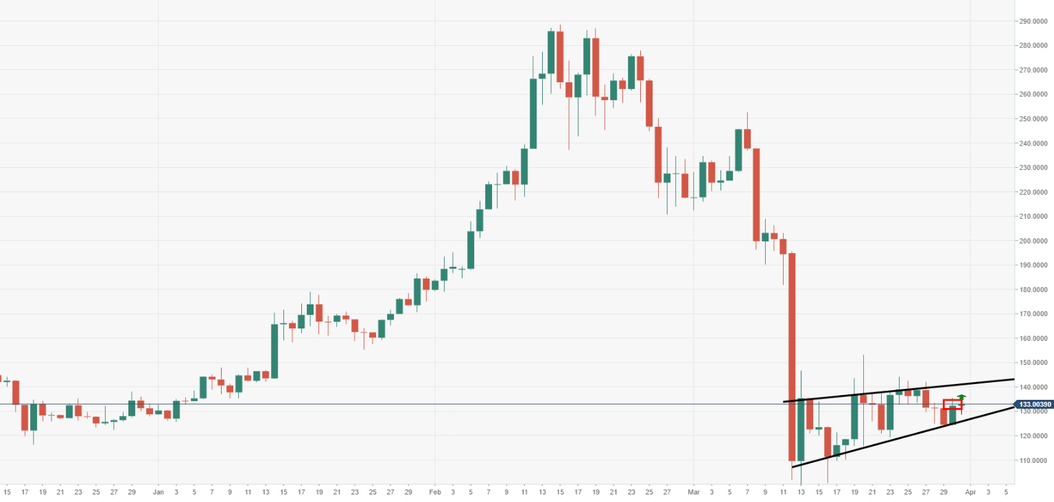 Ethereum daily price action like many of its peers is tight, moving within the confinements of a bearish flag structure.