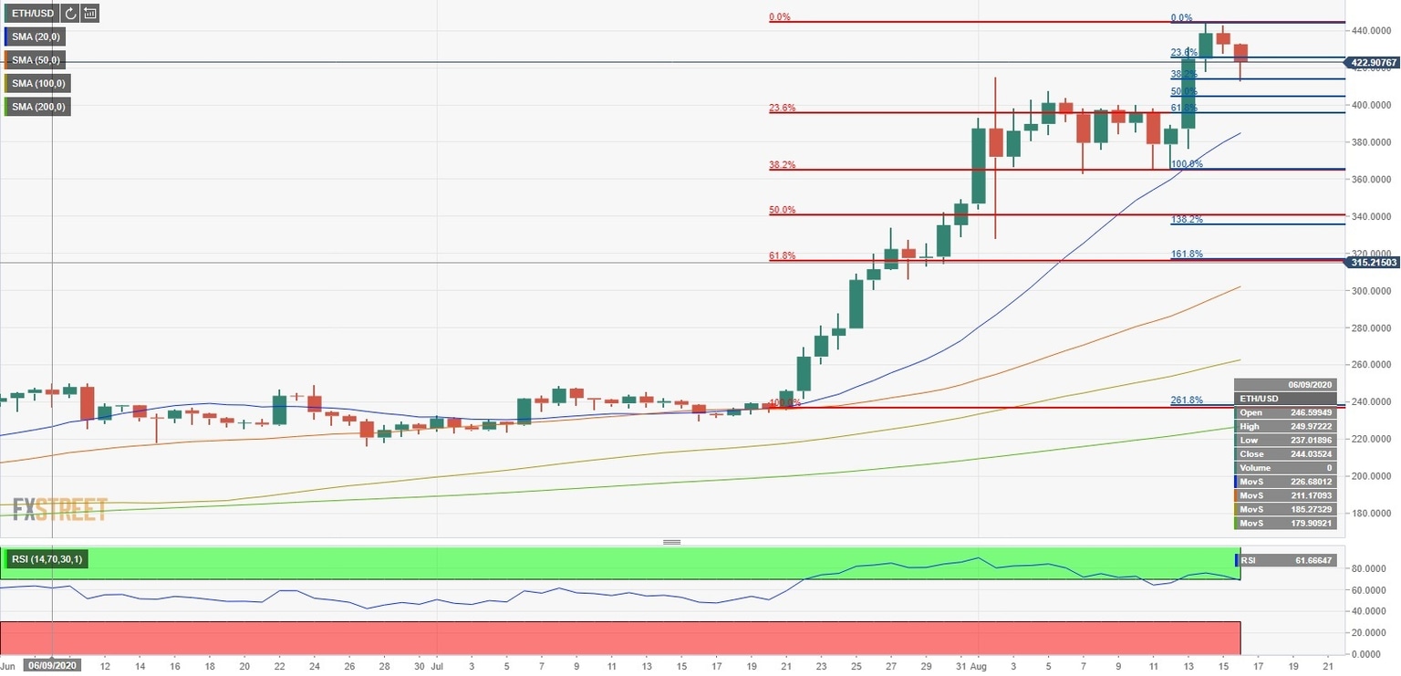 Ethereum Price Analysis: ETH/USD stretches lower toward $420, still up more than 8% weekly
