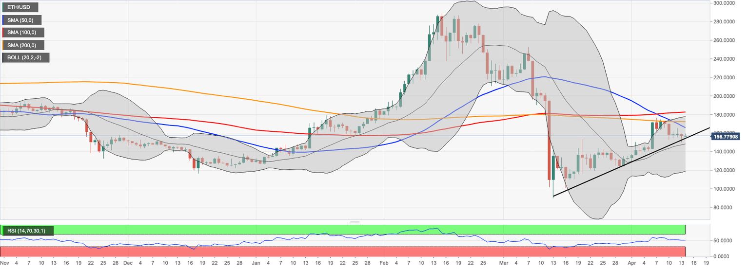 At the time of writing, Ethereum (ETH) is changing hands at $158.70. The coin has gained 2.3% in the recent 24 hours and 1.5% since the beginning of Tuesday. The second-largest coin with the current market value of $17.5 billion has recovered from Monday's low $149.84, however, the further upside seems to be limited by daily SMA50.
