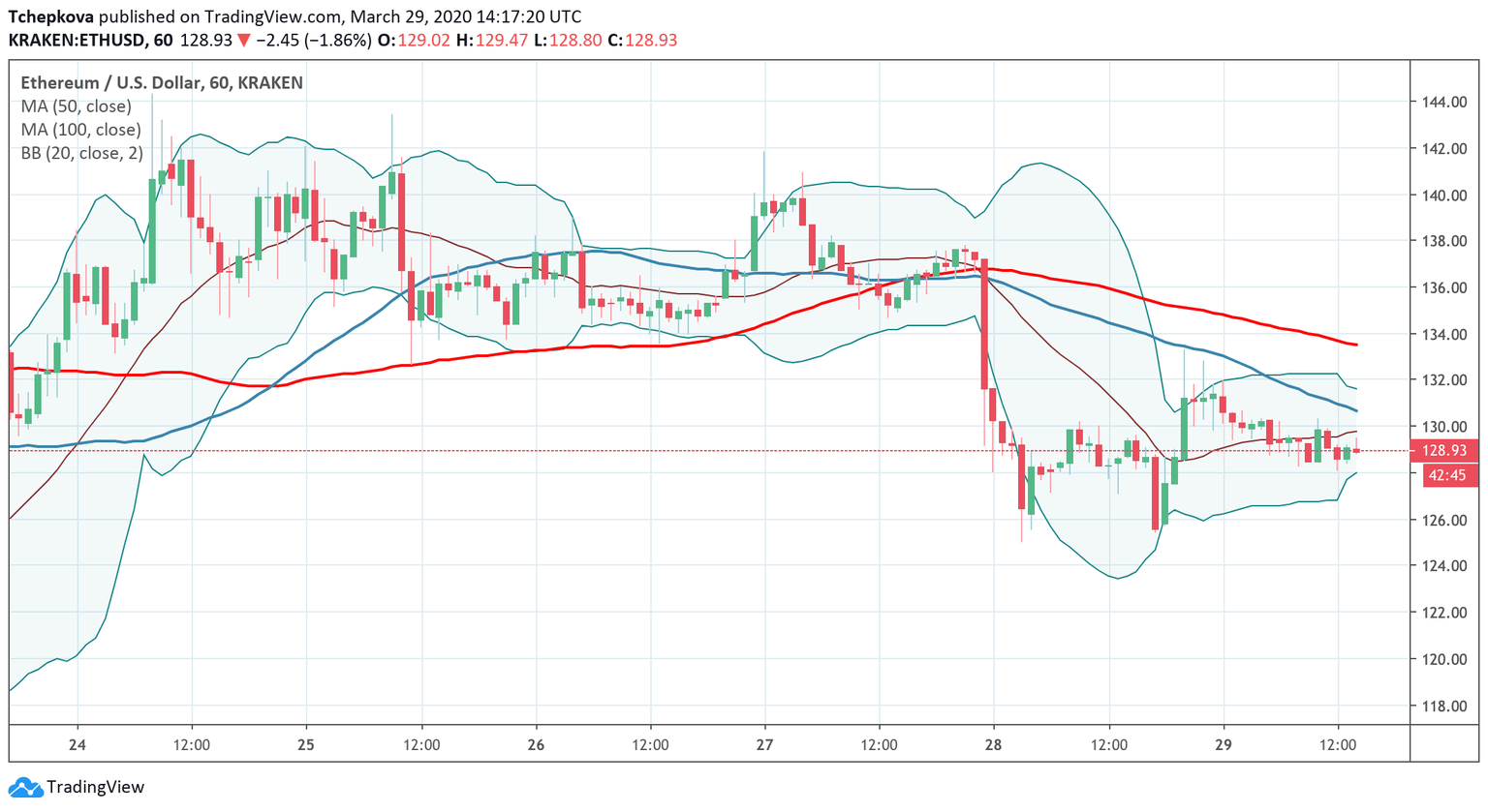 On the intraday charts, ETH/USD recovery is capped by the middle line of 1-hour Bollinger Band currently at $129.60. It is closely followed by psychological $130.00 and SMA50 1-hour at $130.70. Once the price clears this area, the upside momentum is likely to gain traction with the next focus on $131.60 (the upper line of 1-hour Bollinger Band) and $133.30, which is the highest level reached on Saturday.