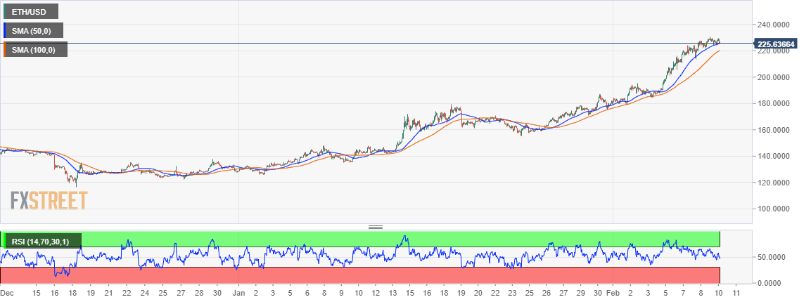 After rising and settling above the 200-day SMA, Ethereum is facing acute resistance at $230. If the resistance is cleared, the action could turn the market strongly bullish and open the road for gains towards $360.