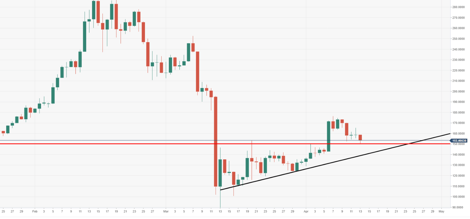 - ETH/USD is back under pressure by the bears, with the critical $150 at risk of a breach.