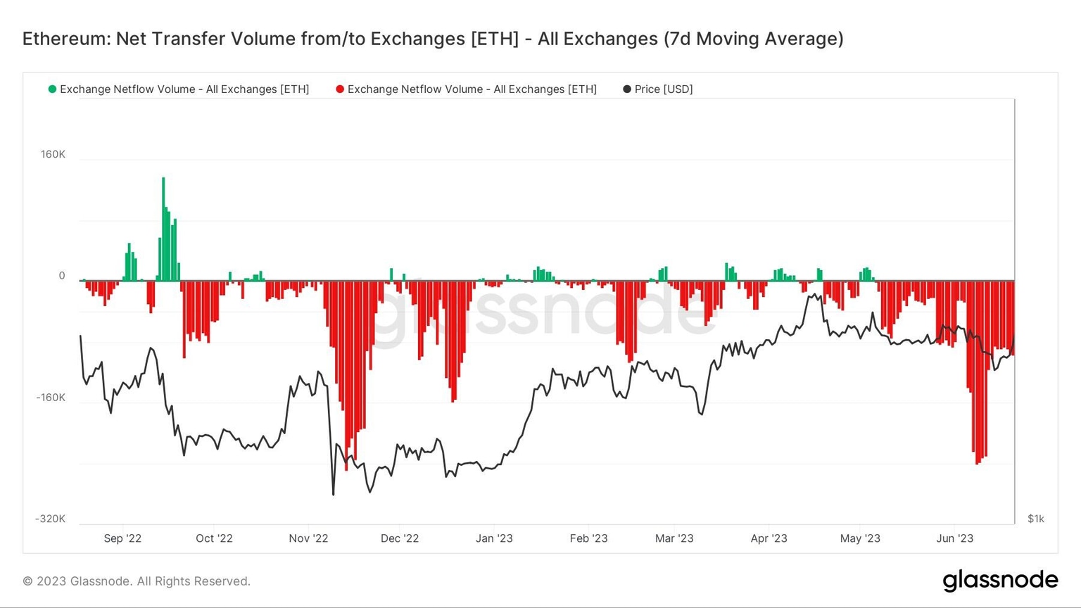 Netflow of ETH deposits and withdrawals from exchanges. Source: Glassnode