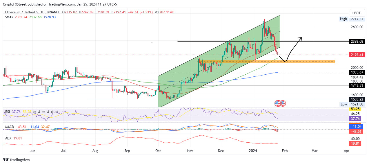 - Ethereum price has dropped nearly 20% since the range high of $2,717 on January 12.