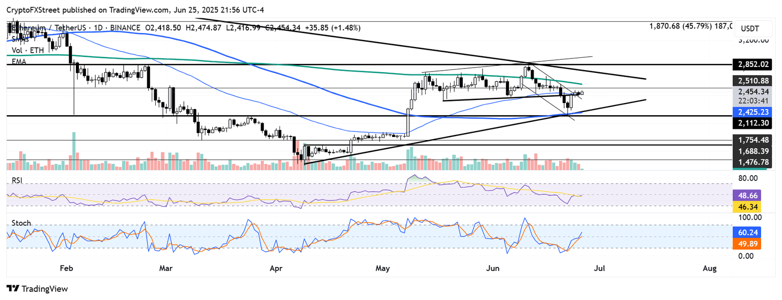 On the upside, ETH must clear the $2,500 and 200-day Simple Moving Average (SMA) resistance to test the symmetrical triangle's upper boundary and potentially the $2,850 key level.