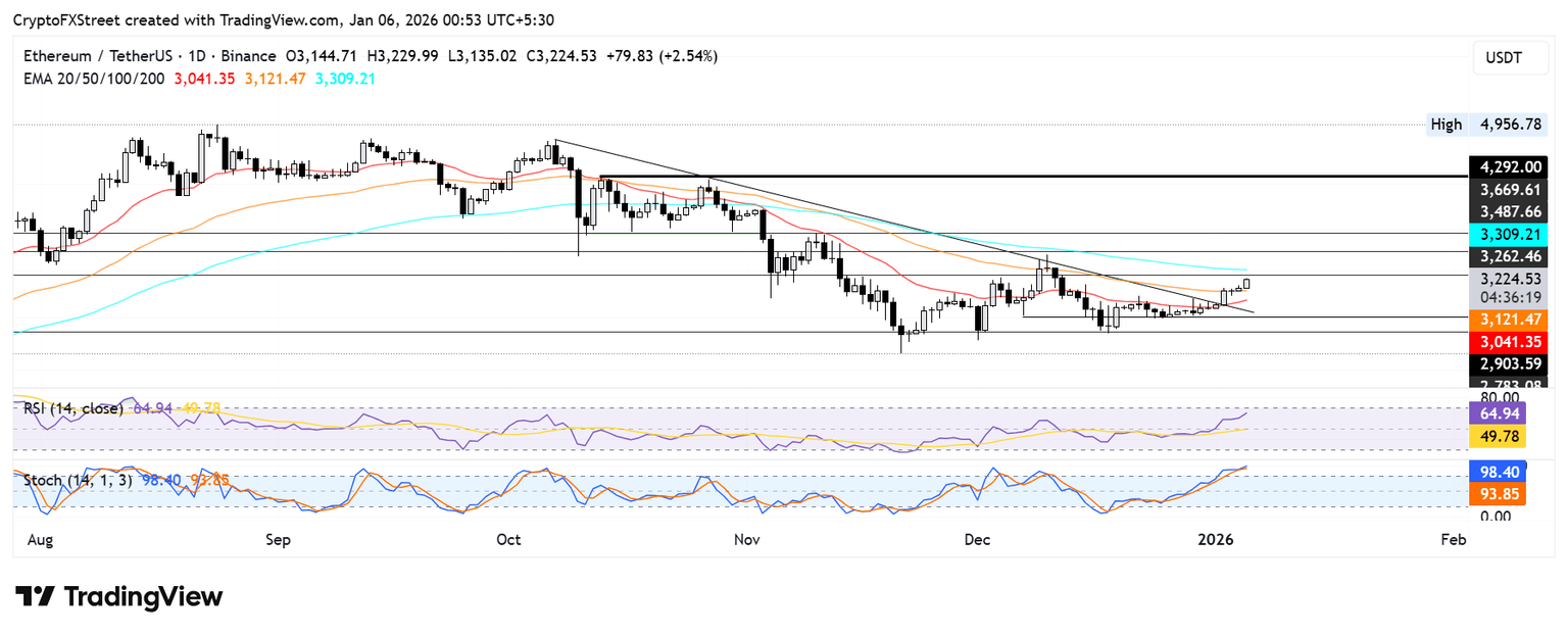 Ethereum Price Forecast: ETH flips 50-day EMA, faces $3,260 resistance