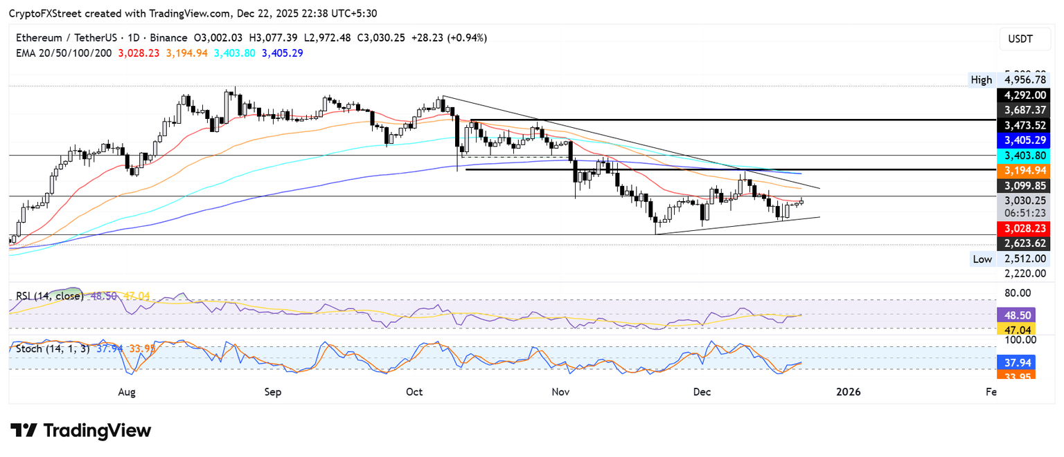 Ethereum Price Forecast: ETH faces resistance at $3,100