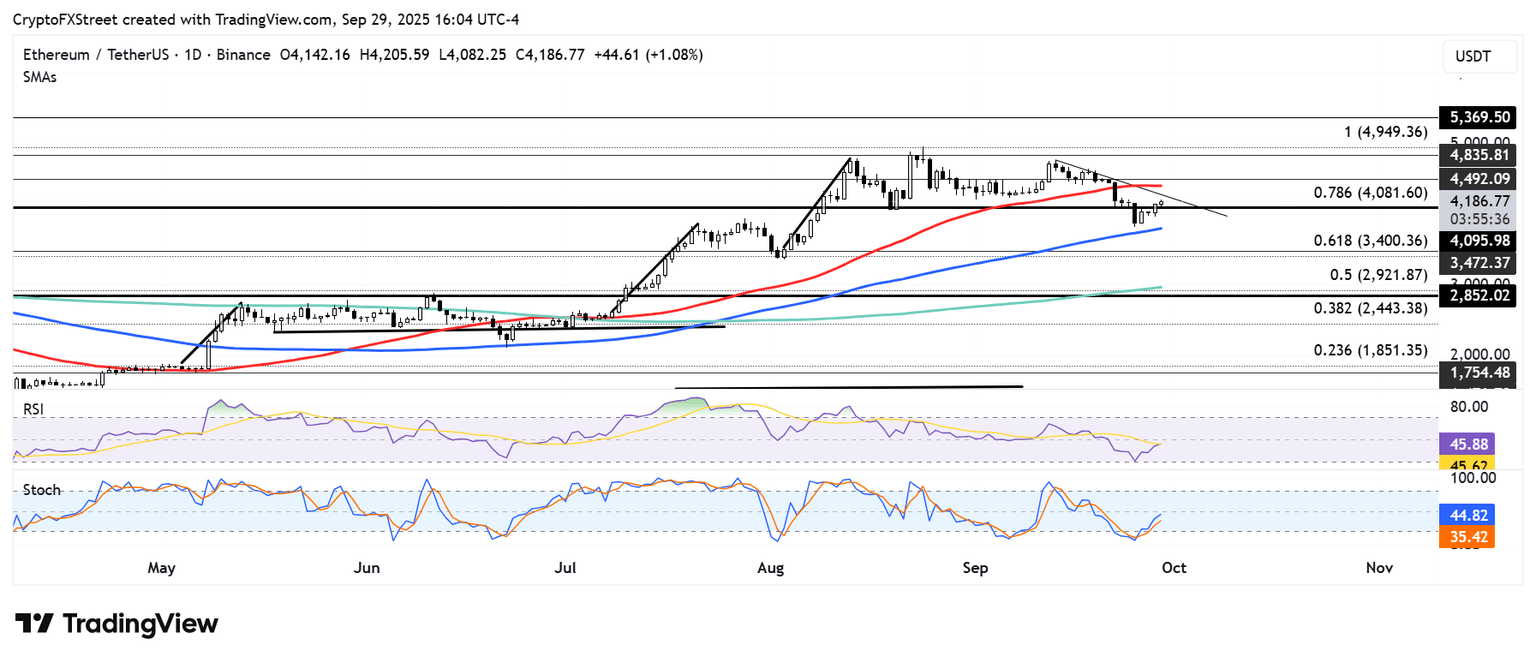 However, the top altcoin is facing pressure after rising past $4,100 — a level that stood as a critical resistance throughout 2024. Above $4,100 is a descending trendline hurdle extending from September 13. ETH must rise above these barriers to test the $4,500 key level, which is strengthened by the 50-day SMA just below it.