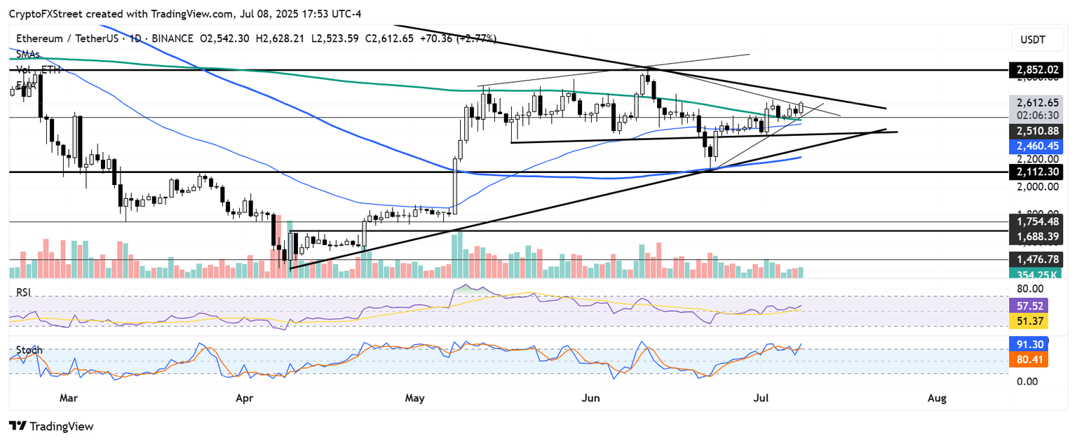 Ethereum Price Forecast: ETH holds $2,500 support, eyes breakout above key symmetrical triangle