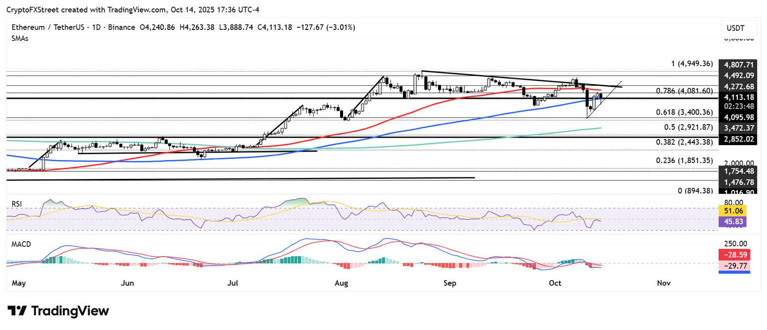 Ethereum Price Forecast: ETH loses $4,100 support, tests key rising trendline