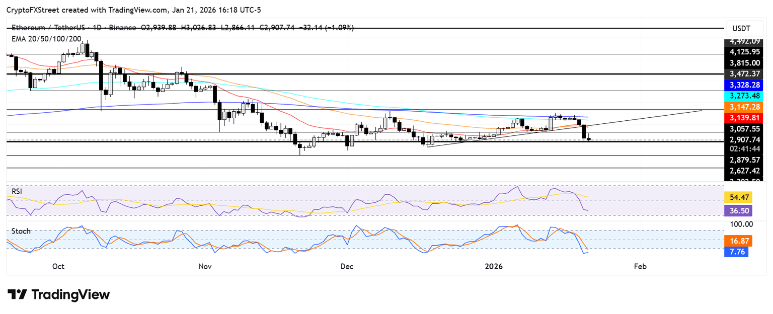Ethereum Price Forecast: ETH could fall to $2,627 if it declines below $2,880