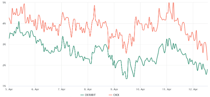 On the other hand, an examination of the futures markets can be used to establish whether the Shanghai/Capella upgrade has influenced investors into more risk-averse attitudes. It is worth mentioning that Ether quarterly futures are a favorite among whales and arbitrage tables, which typically trade at a slight premium to spot markets. This suggests that sellers are asking for more money to delay the settlement.