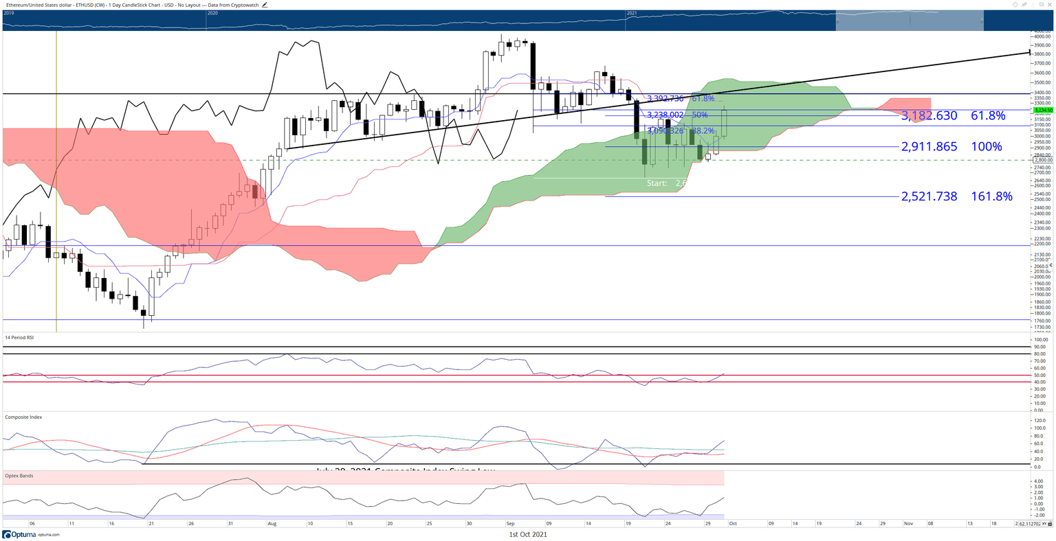 Ethereum price, like many high market cap cryptocurrencies, is inside the Cloud. The Cloud is a particularly volatile and indecisive environment and one where people should not be comfortable. Whipsaws of price action and sudden extreme moves are normal.