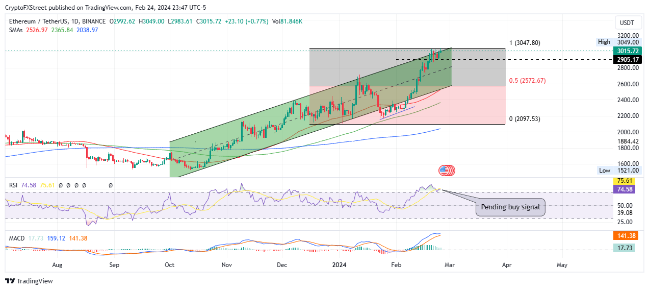 Ethereum (ETH) price is up almost 3% in the last 24 hours to trade for $3,015 as of publishing time. The PoS token broke out above the ascending parallel channel, with prospects for more gains as the ETH bulls continue to show up.