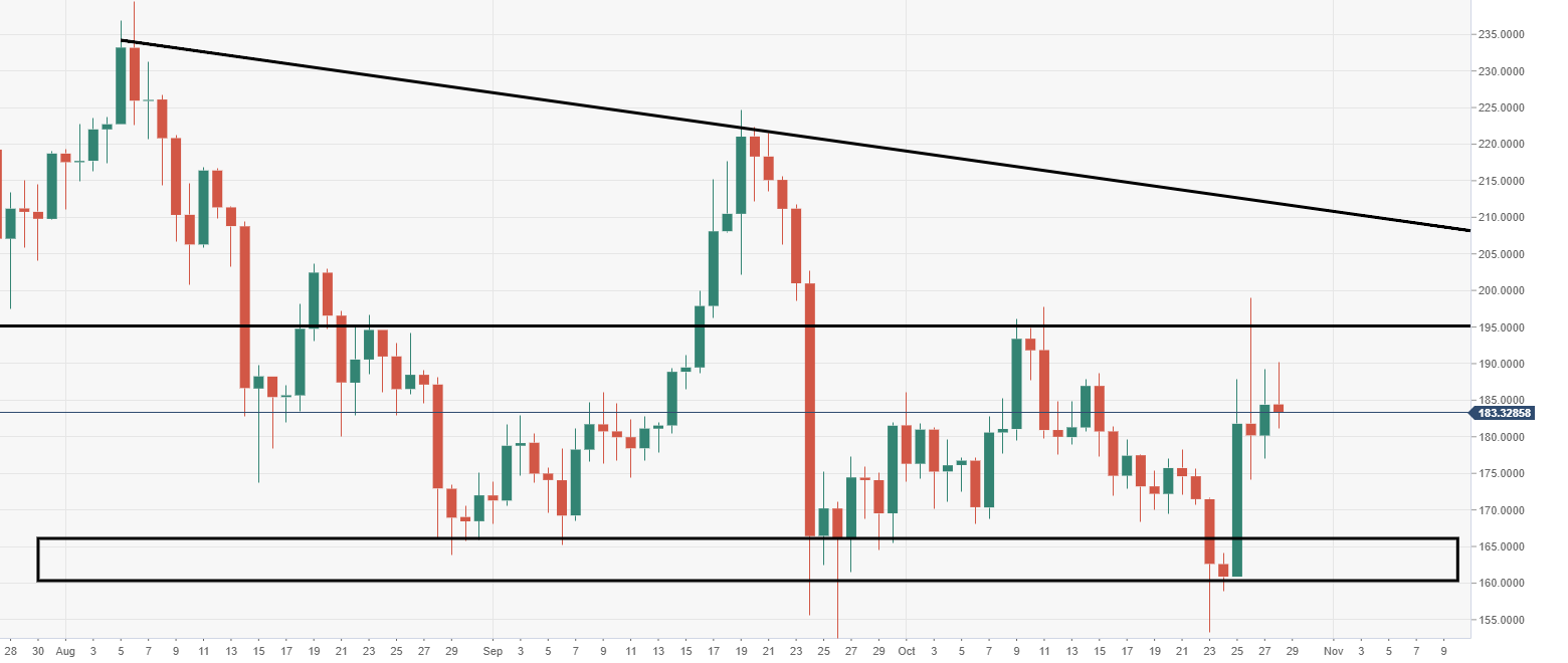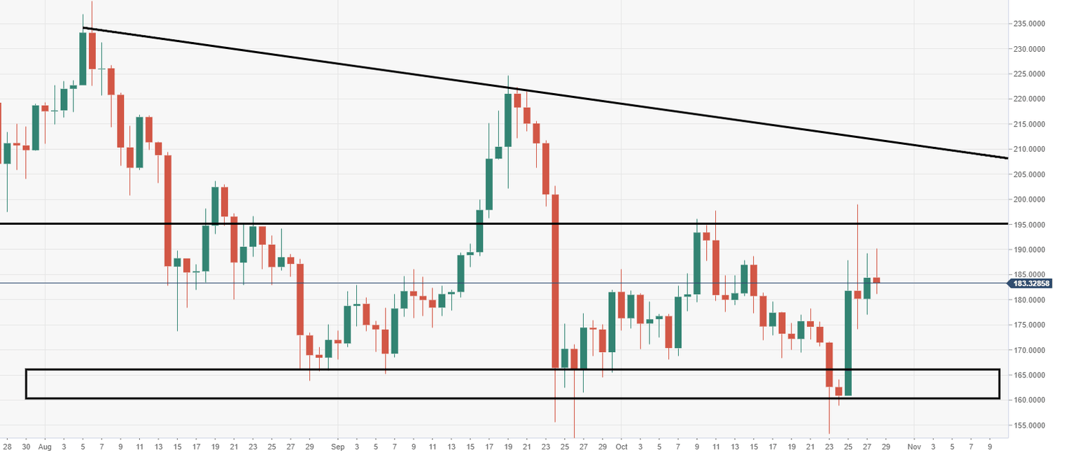 The next major barrier is eyed at $195, tracking as the potential neckline of the noted double bottom.