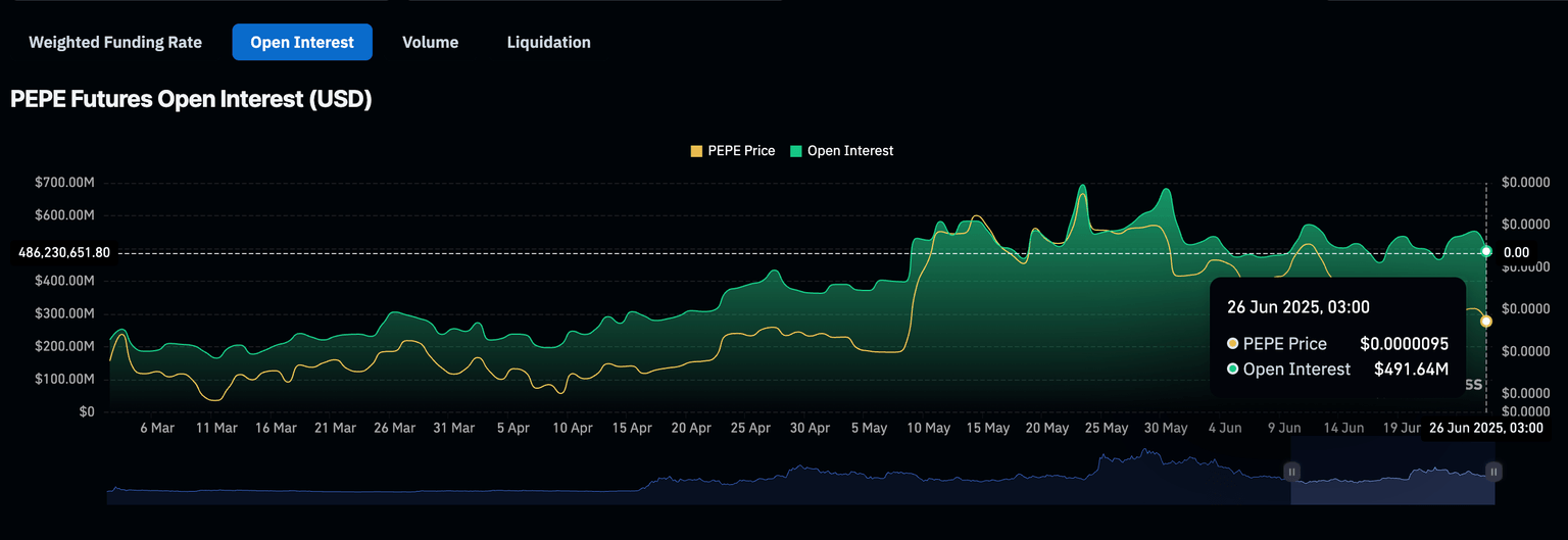 - Pepe extends losses below $0.0000100, testing support around $0.0000090 while the futures open interest plunges.