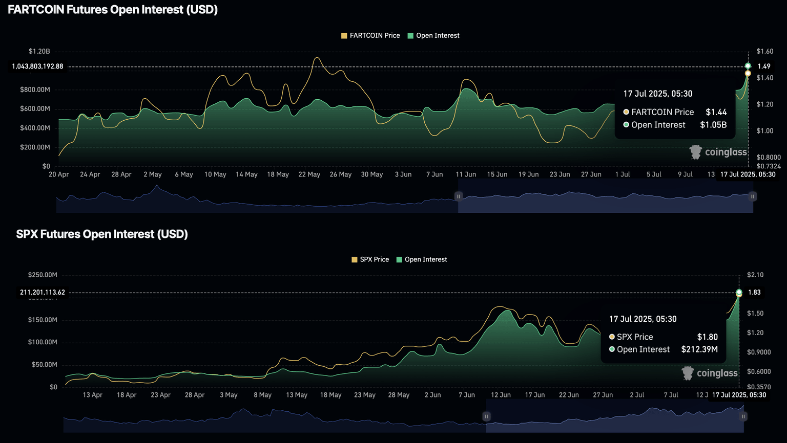 Fartcoin Open Interest hits $1 billion, SPX OI crosses $200 million