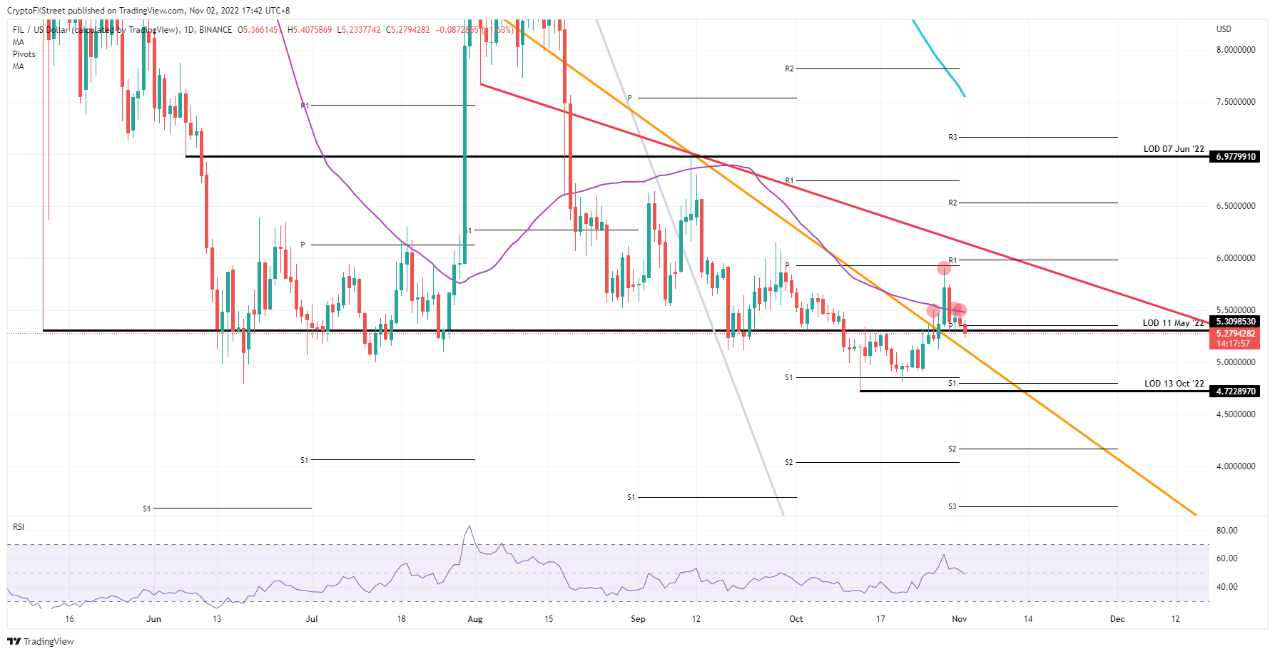 Filecoin price action has been on the back foot for the second day in a row after the bullish breakout from last week, where bulls were able to print a near 7% gain intraday on Saturday. Unfortunately, the aspirations of an extended rally were cut short the day after as a full paring back of the gains occurred. Since then, the 55-day Simple Moving Average has subdued price action and acted as a thumb squashing a fly against the table with $5.31 as a base.
